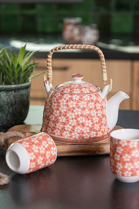 Beige met bloemen Keramische Theepot met Filter- Prijs